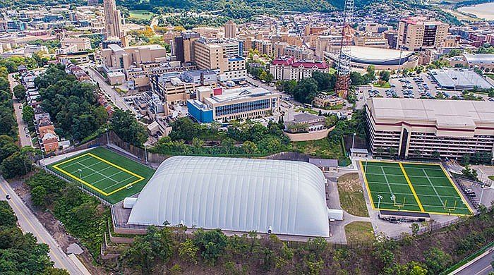 Demolition of former Pitt baseball fields, design/build 50’ high MSE retaining wall, fine grading for (2) outdoor, and (1) indoor turf fields, complete site utilities.
